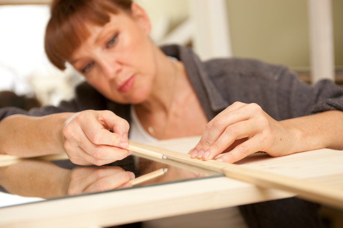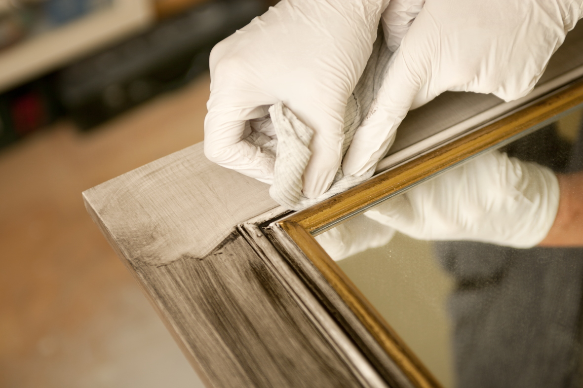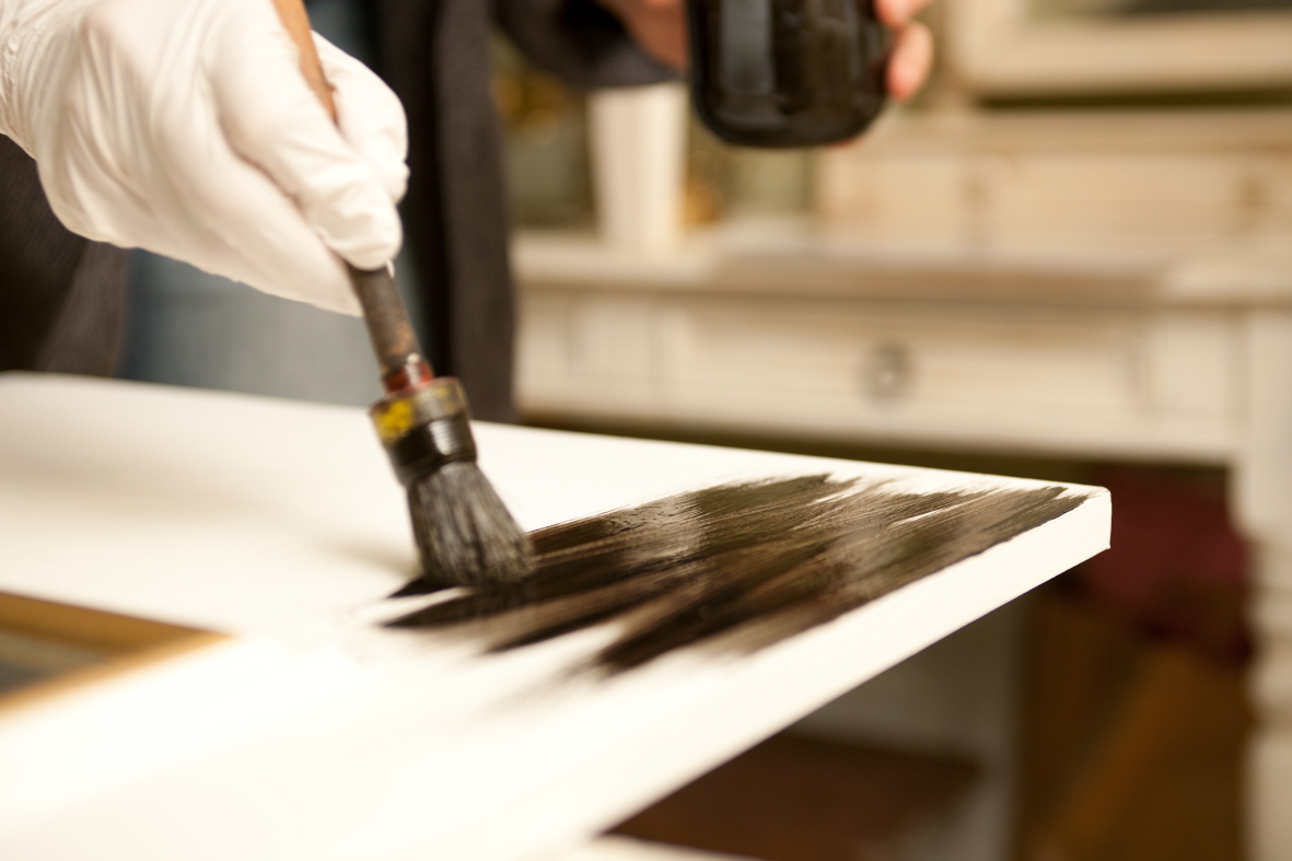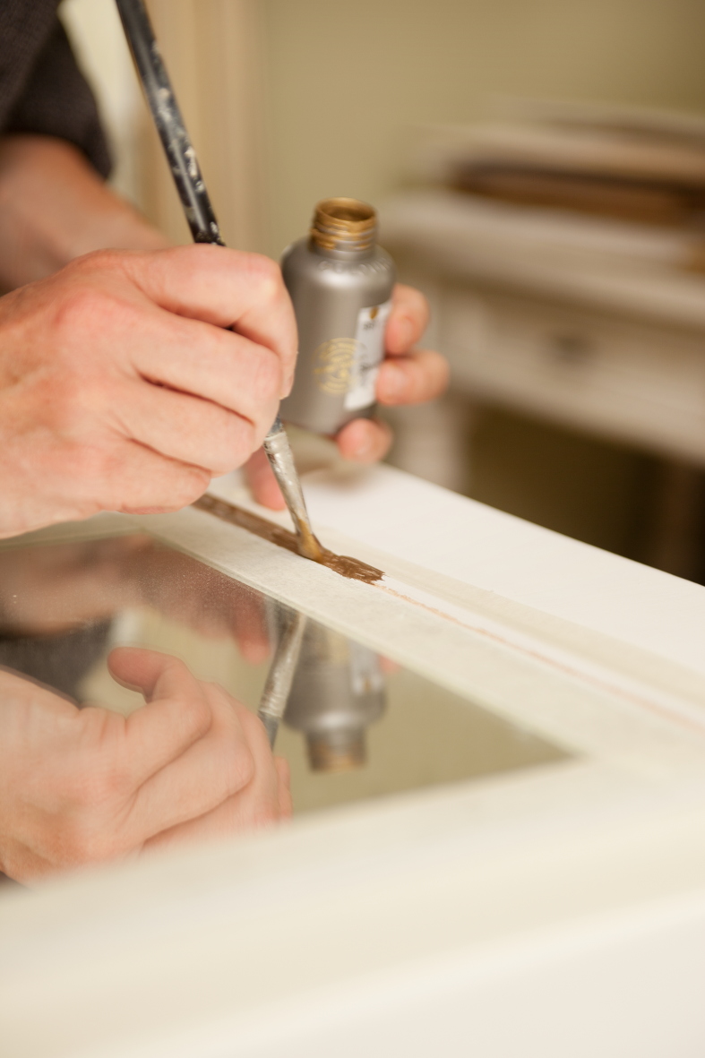 Nach aufwändiger Holzvorbereitung, dem Schleifen, werden passende Ornamente aufgebracht, wird gestrichen, patiniert, was den Shabby-Stil ausmacht, und versiegelt.